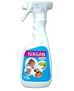Desinfekce klecí Ivasan pro zvířata - dnes už je vícero značek. Vybíráme ale nejlépe ty, které mohou přijít do kontaktu se zvířetem. Tedy pokud zbytky desinfekce zůstanou v kleci tak neublíží zvířeti. Desinfekci používáme při každém čištění klece a to nejlépe na vše co v kleci je a vždy po ukončení nemoci nebo po karanténě. Vyhneme se tak znovunakažení zvířete.