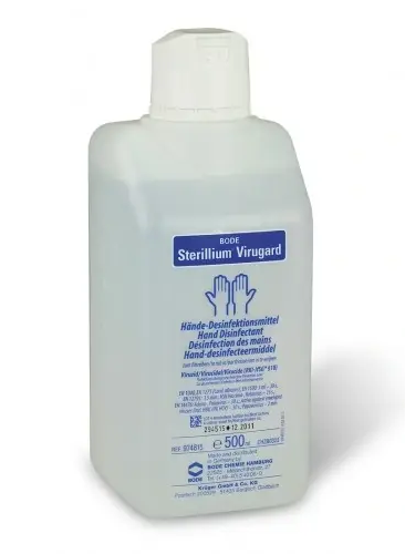 Sterillium Virugard - je desinfekční prostředek na ruce. Je baktericidní, fungicidní, tuberkulocidní, virucidní i na obalené viry do 2 minut. Tento přípravek se nanese na ruce, rozetře a nechá se zachnout. Ideální je ho mít v lékárničce stále, protože při výskytu nakažlivé nemoci je potřeba po každém nemocném zvířeti ruce opláchnout touto desinfekcí. Pozor hořlavina.